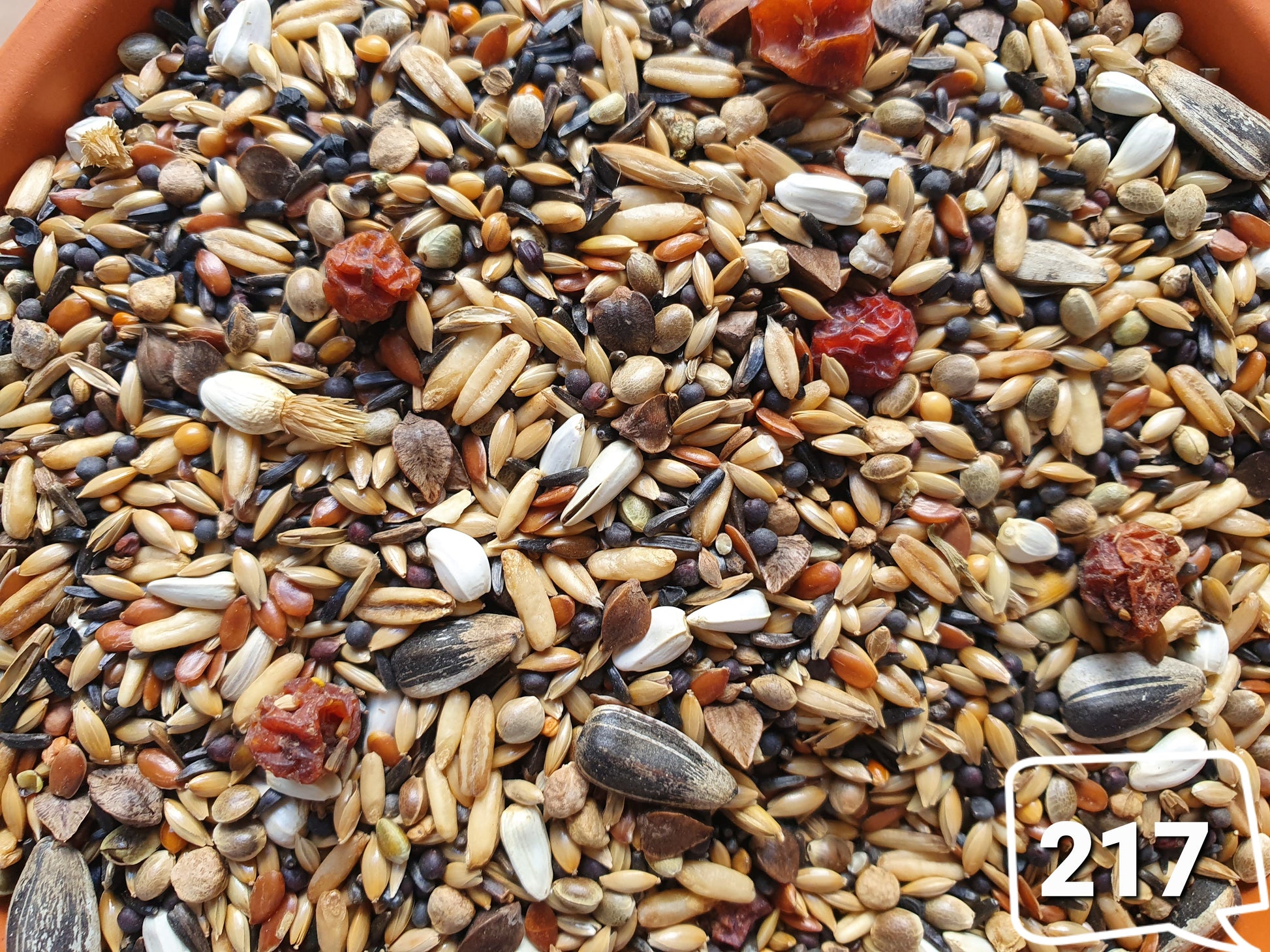 Kanariezaad, Shuttle, Koolzaad, Lijnzaad, Niger, Wilde zaden, kempzaad, Gepelde haver, Perilla, boekweit, Cardy, Gestreepte zonnebloemen, Lijsterbes.