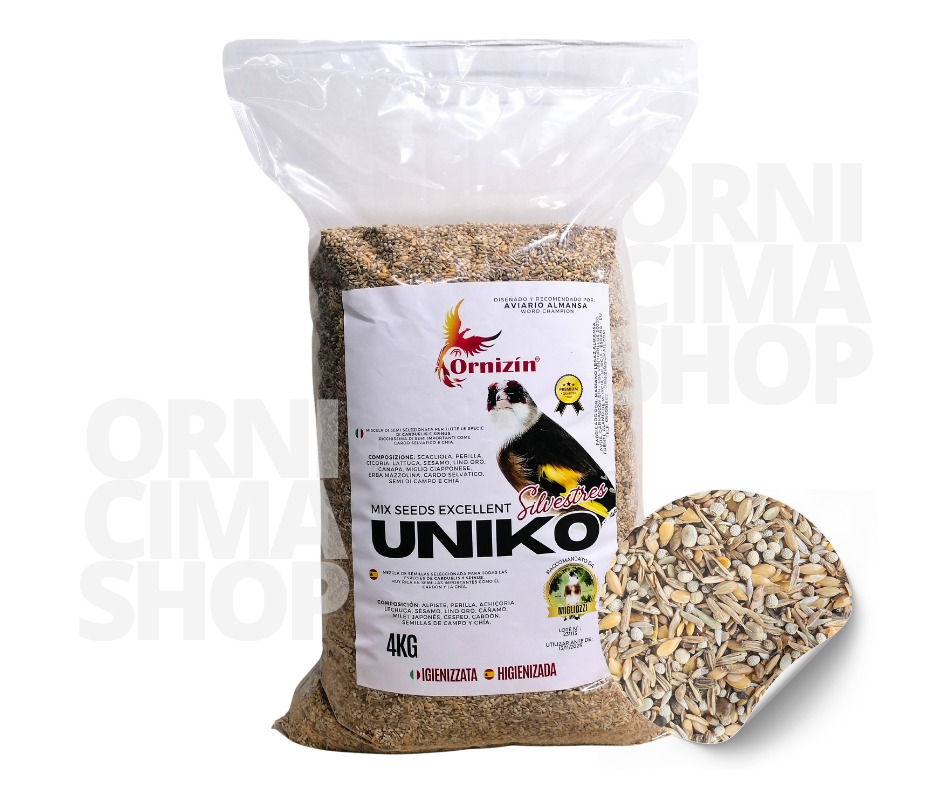 UNIKO SILVESTRES speciaal samengesteld voor uw kostbare distelvinken en spinus. Onze exclusieve “Chiara”-formule is rijk aan wilde distel, chiazaden en vele andere essentiële zaden om aan alle voedingsbehoeften van uw drukke en dierbare vrienden te voldoen.