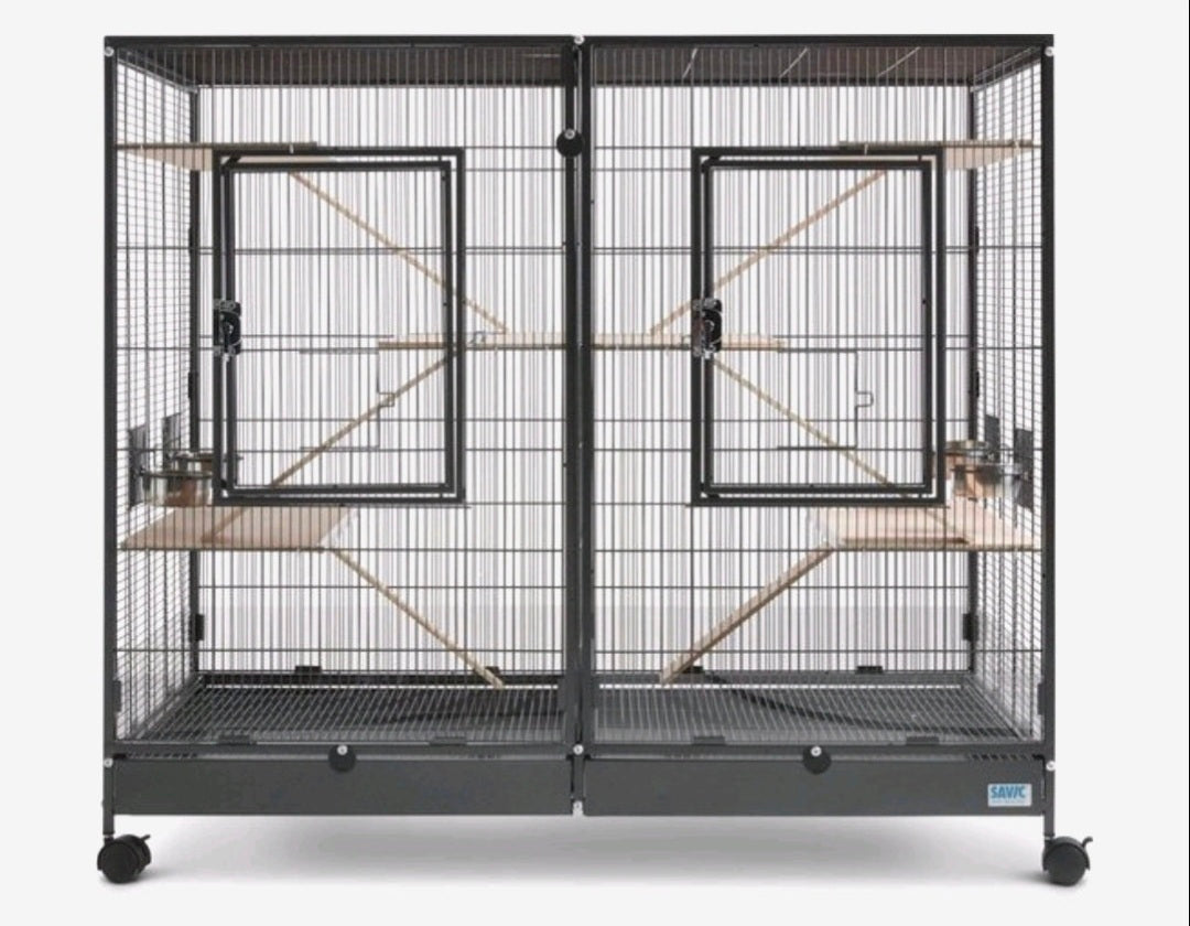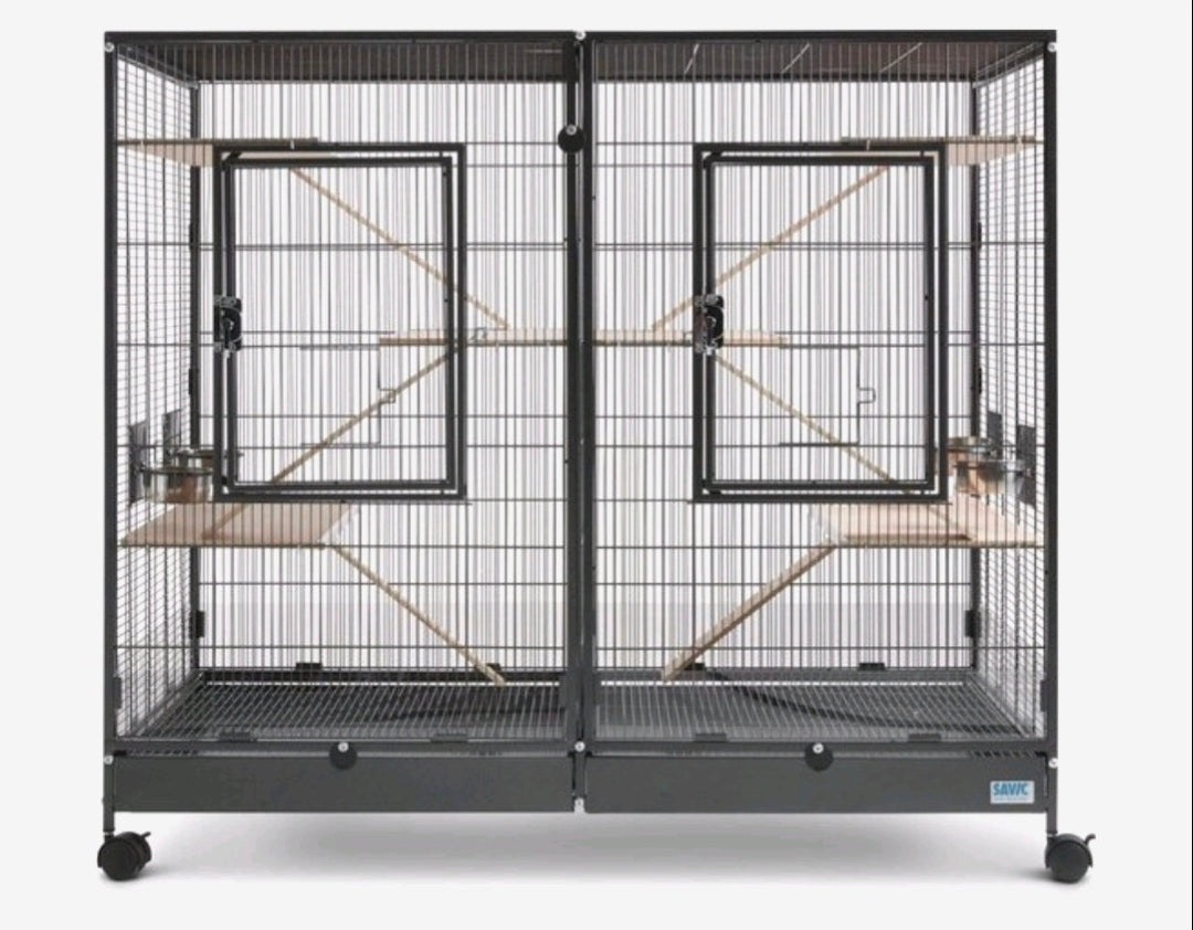 Met de Savic-vogelvolière Tasmania 120 biedt je jouw gevederde huisgenoten een comfortabel thuis. De voorzijde van de volière beschikt over 2 grote dubbele deuren. De grote deuren bieden jouw dieren de mogelijkheid om op elk moment de kooi te verlaten en weer comfortabel te landen. Als er nieuwe vogels in jouw nest komen, kun je het scheidingstralies gebruiken om geleidelijk aan te beginne.n met socialiseren of paren.
