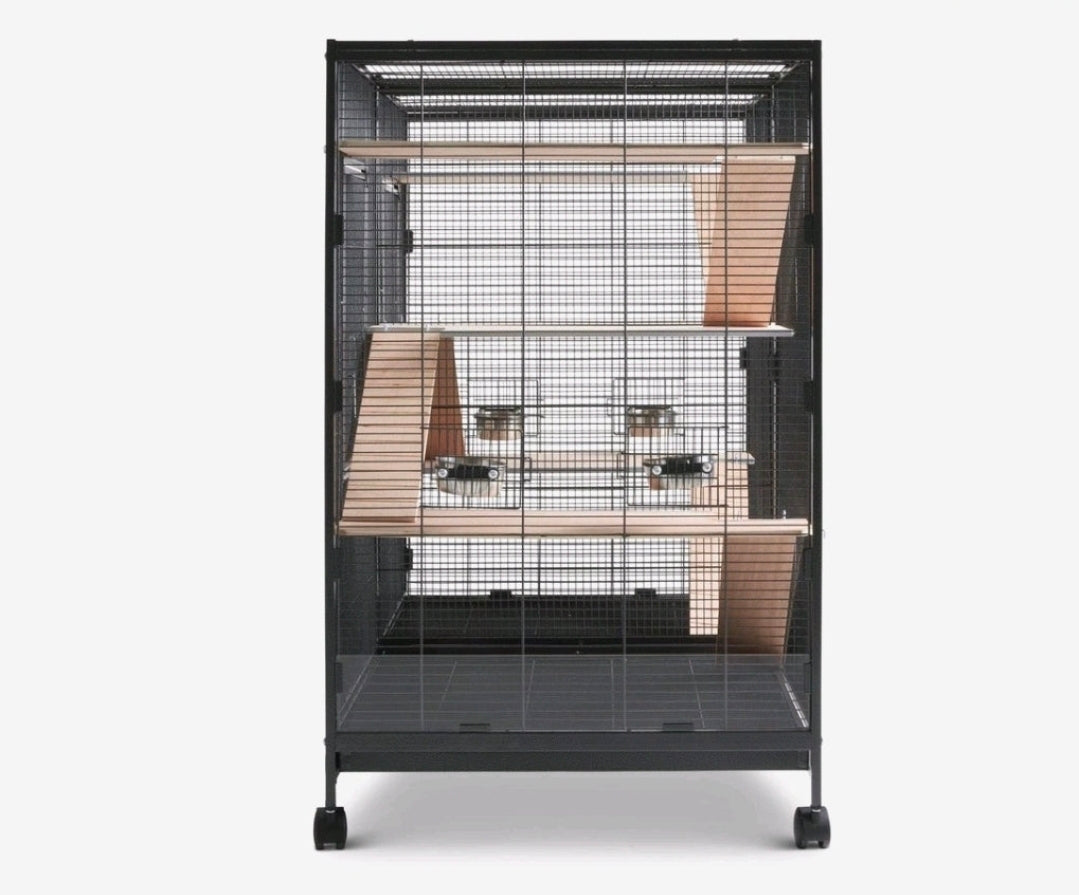 Wanneer je het vogelhuis schoon wil maken, kun je de onderste schaal heel gemakkelijk verwijderen. De vloerroosters voorkomen dat jouw vogels wegvliegen terwijl je de kooi schoonmaakt