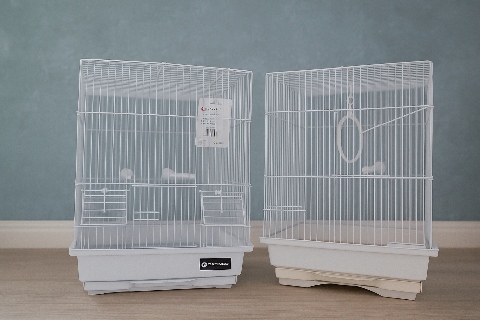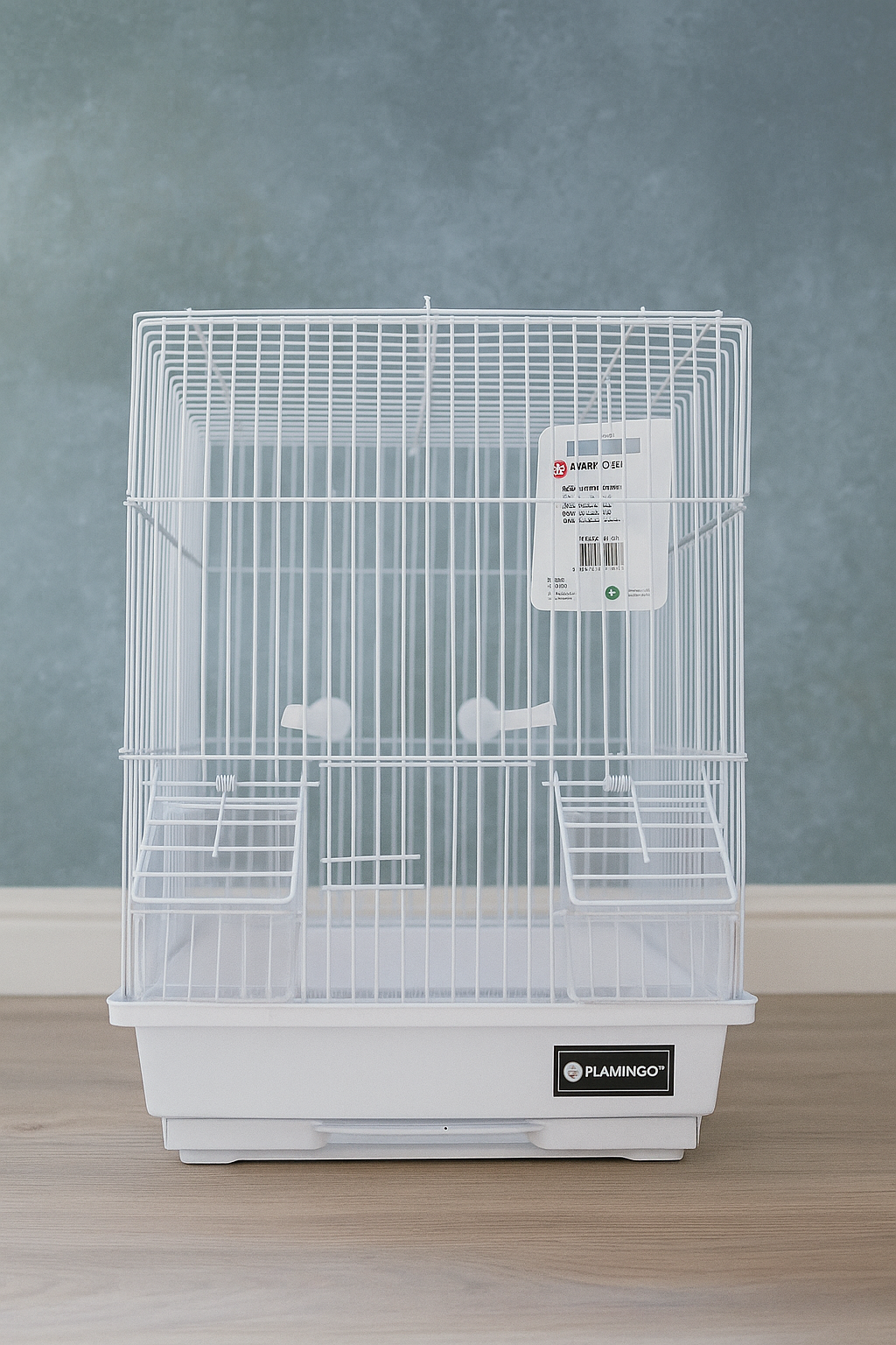 Deze vogelkooi is voorzien van alle benodigdheden. Zo heeft de vogelkooi twee bakjes, één voor het eten en één voor het water. De zitstokken zijn naar wens in te delen in de kooi, welke ook voorzien is van een uitschuifbare lade.